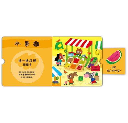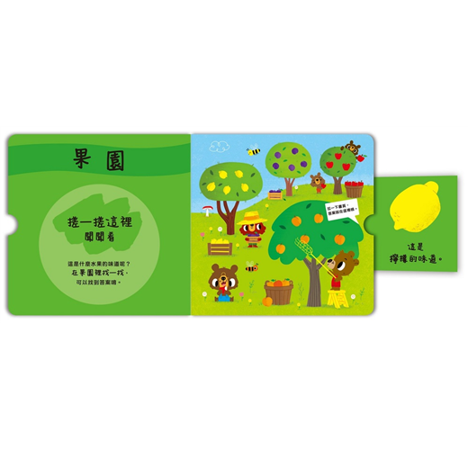 耐翻不易撕破的厚紙板手工書,香味可持續三年之久, 真是太好玩了!快來開啟《寶貝聞聞看-找一找這是什麼水果的味道》,讓親子共讀變得親密而有趣。
