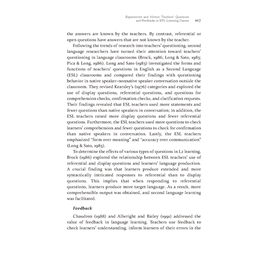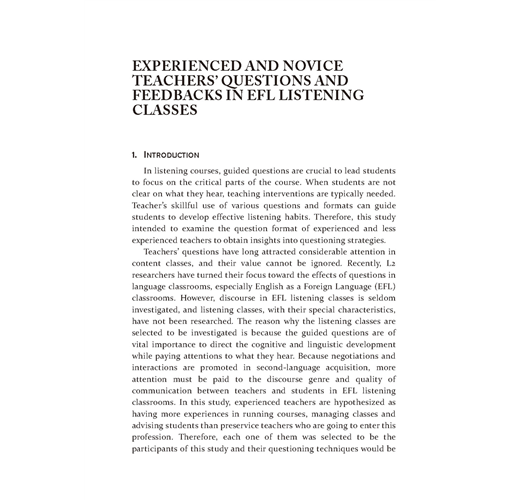 EXPERIENCED AND NOVICE TEACHERS’ QUESTIONS AND FEEDBACKS IN EFL LISTENING CLASSES
