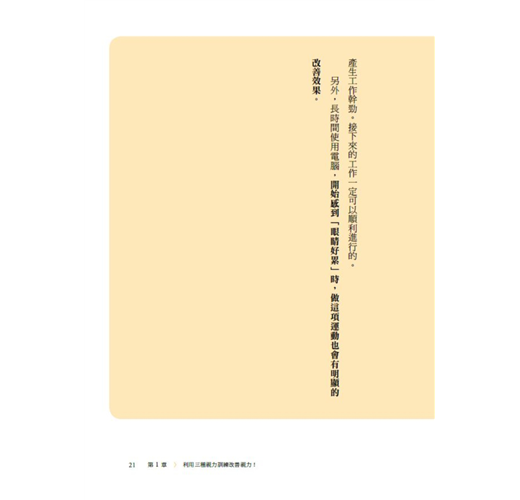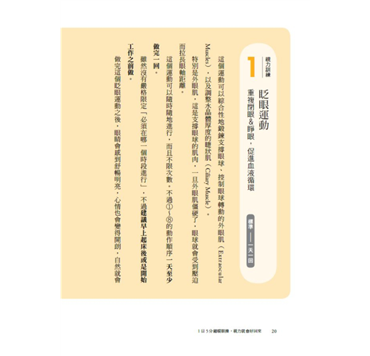 另外,這個訓練也會恢復血管與神經的彈性。具有彈性的血管能夠運送足夠的養分與氧氣到眼睛各處的細胞。