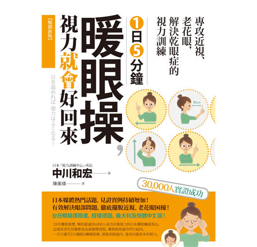 相關著作:《1日5分鐘暖眼操,視力就會好回來:消除眼部虛冷,提升視力,讓大腦變年輕的視力訓練》《電腦、手機盯再久也不怕!消除眼睛疲勞、有效回復視力的中川式護眼法》