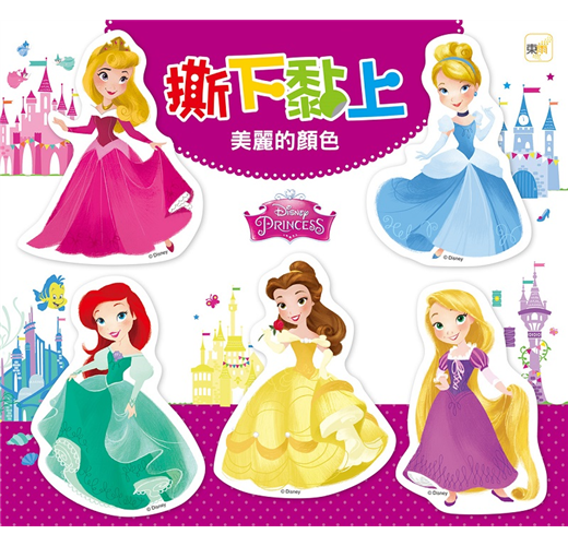 12頁遊戲頁面+中英文顏色貼紙1張+﹝迪士尼公主﹞魔鬼氈可撕黏圖卡5張