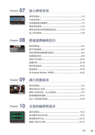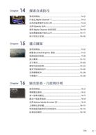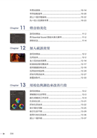 全書包含16個課程,涵蓋所有學習Premiere Pro所必須知道的基本知識與操作,並且提供不計其數的訣竅與技法,幫助您在使用Premiere Pro CC時,能夠大幅提昇創意的生產力。你可以從頭到尾、按照本書的說明來閱讀,或是挑選你有興趣的章節。