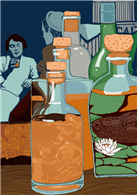 阿梅莉亞小姐邁著遲緩、笨拙的大步,兩步就跨過了前廊。她走下臺階,站在那裡,若有所思地看著陌生人。她小心翼翼地用棕色的長食指碰了碰他背上的駝峰。駝子還在哭泣,不過聲音比剛才小多了。夜晚很安靜,月光依舊清澈柔和,天氣越來越冷了。這時阿梅莉亞小姐做出了一個罕見的舉動:她從屁股後面的口袋裡掏出一個酒瓶,用手掌擦了擦瓶口,把酒瓶遞給駝子,讓他喝。阿梅莉亞小姐賣酒難得賒帳,就阿梅莉亞小姐而言,讓別人不花錢喝上哪怕一滴酒幾乎也是從未聽說過的。