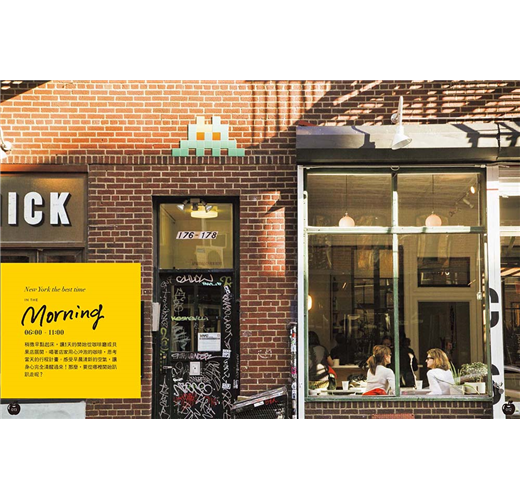 ★將一天的時間拆解,解析出各時間帶的推薦好去處。列舉場域或店家的基本情報與特性,讓你便於從中擷取出適合的選項。紐約作為一個兼具多樣化風貌的城市,在各個時段能夠嘗試的事物也更富變化。今天想要一口氣體驗各項不同的事物,還是期待以什麼樣的風格來詮釋「紐約客」?在這個自由奔放的園地裡,沒有任何東西能夠限制你的想像力!