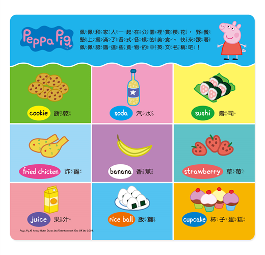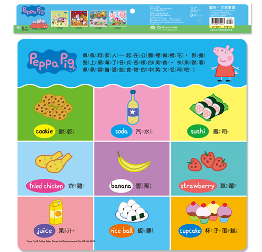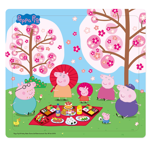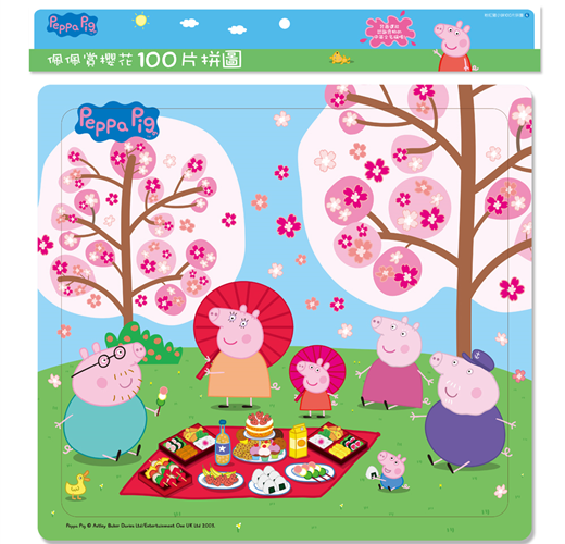 粉紅豬小妹這次跟家人一起在公園裡野餐、賞櫻花,除了拼組出佩佩和家人賞櫻花的快樂模樣,背面還可以學習各種食物的英文單字,玩拼圖+學單字,正面、背面都好玩!