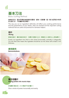 ・ 以日常烹調技法、廚具及刀工切法為主,如中式的煎、炒、煮、炸、燜、燉、煲,詳述每種的特點,讓家傭瞭解不同煮法適合哪款菜式,靈活適當運用。