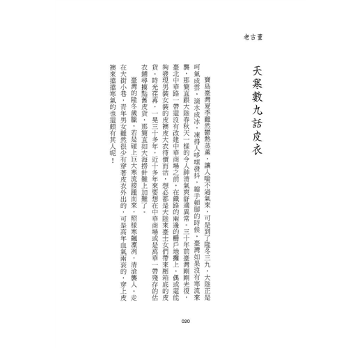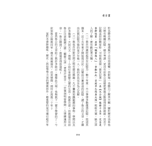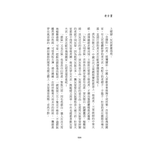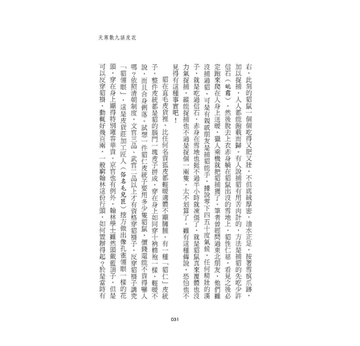 本書專講掌故逸聞,作者對滿族清宮大內的事物如數家珍,而大半是親身經歷,所以把來龍去脈說得詳詳細細。本書有歷史、古物、民俗、掌故、趣味等多方面的價值,更引起中老年人的無窮回憶,增進青年人的知識。