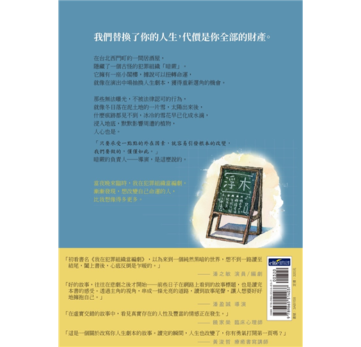 本書裡提供了另一種想像──「如果此刻擁有人生的劇本,你會如何改寫?」初看書名《我在犯罪組織當編劇》,會以為來到一個純然黑暗的世界,想不到一路讀至結尾,闔上書後,心底反倒是乍暖的,就像犯罪組織的名稱『暗蕨』,於腐敗之地重生、繁衍、改變,在黑暗中闢出另一種人生,而回過頭來省思的,不過仍是我們自己的人生,每個人都是自己人生最高明的編劇。