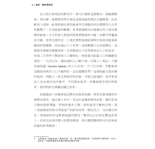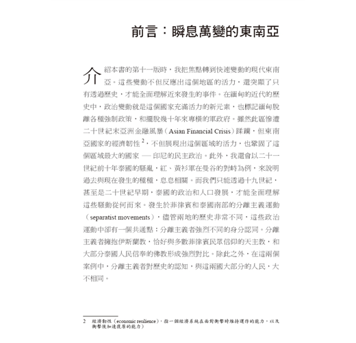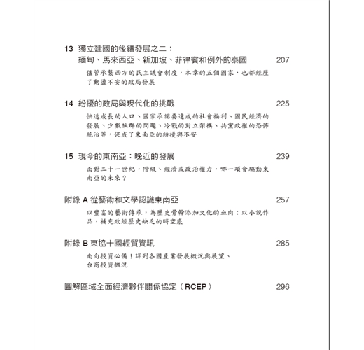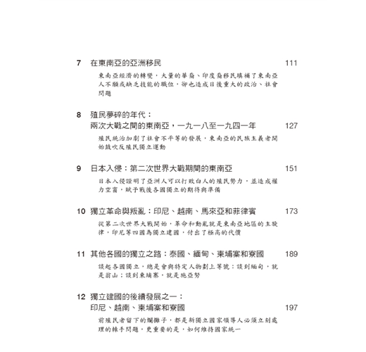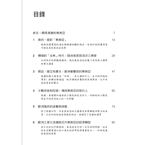 重新審視東南亞,追索各國發展的歷程,分辨各國不同政體、文化傳統,釐清當今的局勢,並找出長久以來排斥外來影響的因素,重新認識我們不可忽視的鄰居。