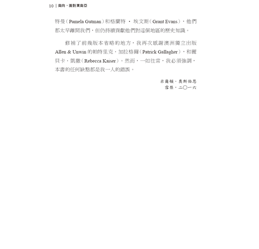 作者米爾頓•奧斯伯恩博士長居東南亞,五十餘年來對東南亞的國家、複雜人種與語言進行長期研究與觀察,專注於十八世紀以來殖民統治的影響外,對印度、中國、伊斯蘭文化淺移默化造就的多元豐富的東南亞社會、經濟及政治生態,更多所著墨。
