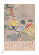 根據圖片的說明:「雪國新潟縣的市之瀨國民學校決定,不只體育課,所有的上課時間都要打赤膊。上學時在校門口脫掉上衣,放學時再穿上。不只在戶外勤勞奉行,如圖中六年級學生一樣,甚至在教室裡大家都要把衣服脫掉。」這種教育方針似乎是在「質實剛健」這種什麼都能套用的口號下進行,在冬天時一定會很冷,令人心疼。