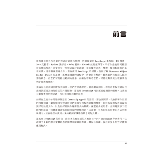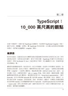「如果你想要深入學習TypeScript,找這本書就對了。《TypeScript程式設計》展示了在JavaScript之上使用型別系統的所有好處,並提供深刻的見解幫助你精通此語言。」