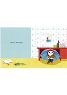 下雨沒辦法出去玩的小女孩,在家裡運用想像力,平凡的周遭事物,都成了好玩的遊戲。