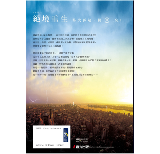 相關著作:《烽火再起[輯三]絕境重生(限量親筆簽名版)》《烽火再起[輯二]廢境之戰》《烽火再起[輯一]墨血風暴》《遺落之子:﹝輯三﹞曙光再現(限量作者親筆簽名珍藏版)》《遺落之子:﹝輯三﹞曙光再現(完)》《遺落之子:﹝輯二﹞末世餘暉》《遺落之子:﹝輯一﹞荒蕪烈焰》