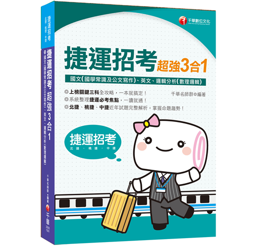 目前臺北捷運、桃園捷運、臺中捷運,除了國文、英文及專業科目外,還需通過邏輯分析(數理邏輯)一關才可上榜。而每次捷運招考公告與實際考試日期,往往不到一個月,讀書時間非常的短暫。因此,為了因應不同的考試需求,與大幅縮短準備時間,本書使用系統式的整合方式,將各項考科的內容統整,以精華方式呈現,力求讓您在最短時間內得到考取高分的能力。