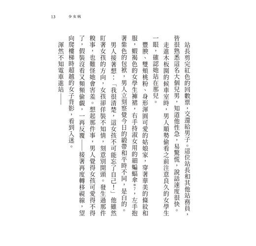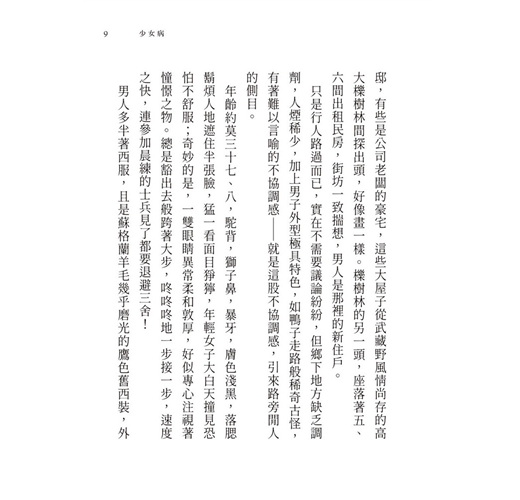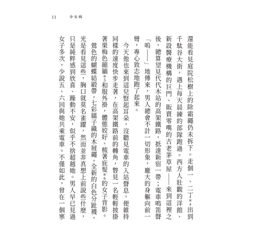 本書收錄兩篇日本自然主義文學的代表作,田山花袋的〈少女病〉與〈棉被〉,先後發表於一九〇七年,他大膽而露骨地描寫中年男子對於正值花樣年華的女孩的凝視與慾望,尤其〈棉被〉一篇,更被看成是作者本人的懺情錄。自我揭露與剖白的文學手法,刻劃出情感的斑斑血跡,使他成為日本文學「私小說」的第一人。
