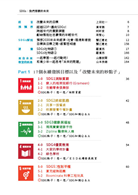 17個目標,17個不同的圖示與顏色。章節之中只要有提到關聯目標就會在右頁中把顏色標出來,讓讀者一看就知道如果做這件事那麼他同時會幫助幾個目標。