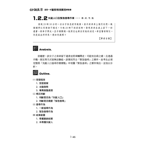 本書不同於市面上的考試用書,內容包括選擇題解題、申論題解題、重要案例分析、還有各種警察情境實務SOP,最符合考生的需求!