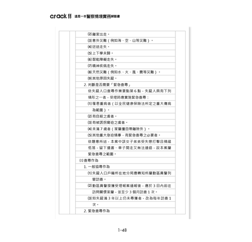 1.2.2 失蹤人口及緊急查尋作業【筆者自擬】 1-46