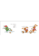 兔子努利和青蛙慕特是好朋友。有一天早上,努利起床後發現外面堆滿了雪,興奮的叫著慕特一起出去看雪。他們兩個開始捏起雪球,玩得不亦樂乎。後來努利建議他們一起做個雪人。努利說:「我們可以用煤炭做雪人的眼睛,紅蘿蔔做他的耳朵。」慕特聽了大吃一驚,說:「可是,可是,雪人並沒有耳朵呀!」努利指指自己,說:「你看,我長了長長的耳朵,雪人看起來當然也是這個樣子。」慕特不信,他認為雪人應該長得像他自己那個樣子。兩人一言不合就吵了起來,一個大嚷:雪人又不叫「雪蛙!」,一個大喊:雪人也不叫「雪兔!」兩人誰也不讓誰,最後決定,大家分別做出自己心目中的雪人,再找熊奶奶來評評理。猜猜看熊奶奶會怎麼評分呢?