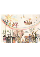這部作品的圖畫刻意將彩度降低,用溫柔的筆觸與一點童稚的氣息,畫出一個萬物和諧共生的大世界。於是,泡在水中的河馬與揚起長鼻子的大象都帶著笑臉;孩子們與動物們肩並肩迎向新的一天;人們從小到大歷經變化的一生就像恐龍、鯨魚或猴子的歲月,同樣駐足在光陰的長河裡。這些畫面當然有些夢幻,不過這正是作者意圖表達的吧!就是不管你我的外型如何不同,甚至各自隸屬於不同的物種或者生活在不一樣的世代,我們同樣都是擁有宇宙之心、籠罩在愛的神秘光芒下的一員。