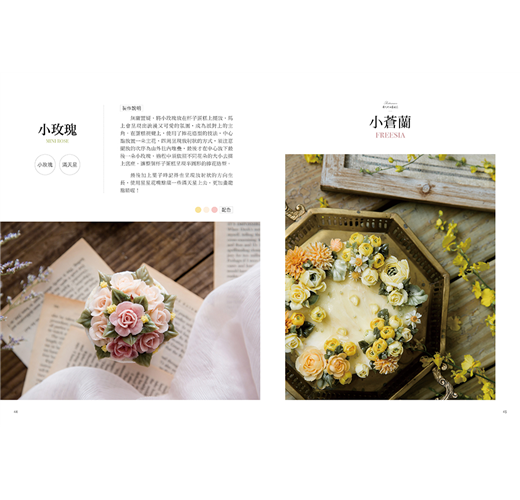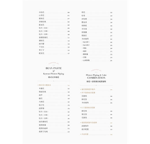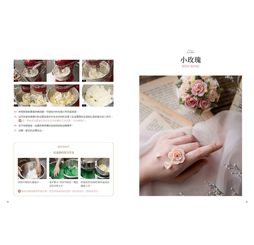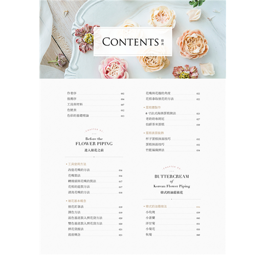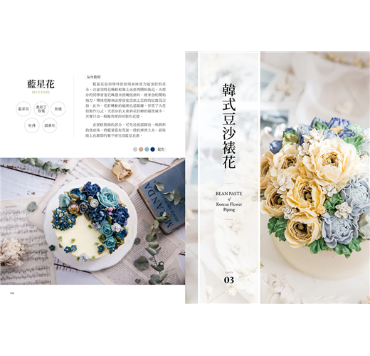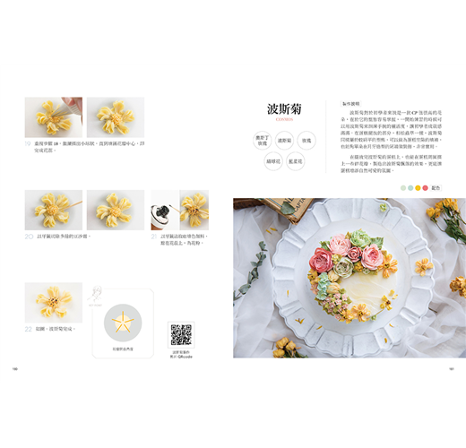 書中涵蓋玫瑰、秋菊、水仙花、牡丹、波斯菊等各式花型,並將使用花嘴、花嘴角度,操作步驟、訣竅等零藏私揭秘,讓你跟著圖文步驟輕鬆操作、快速上手,快來一起來享受絕美裱花時光。