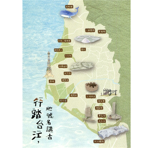 地圖記載了土地樣貌、人群開墾移居的軌跡,人們畫出虛實的線條、手寫上不同語言的地名──每個地名都乘載一個個歷史故事。台江地區多年來因地貌改變衍生出多樣化的地景與經濟產業,本書試圖透過古地圖、文獻與採集地方耆老的回憶及口述訪談,抽絲剝繭,透過地名重新看見台江的前世今生,感受人、海、土地的共生情感。