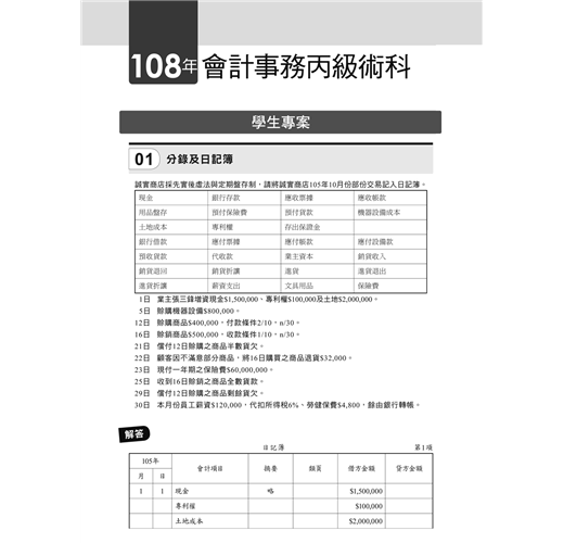主題式會計事務(人工記帳、資訊)丙級 技能檢定術科滿分題庫