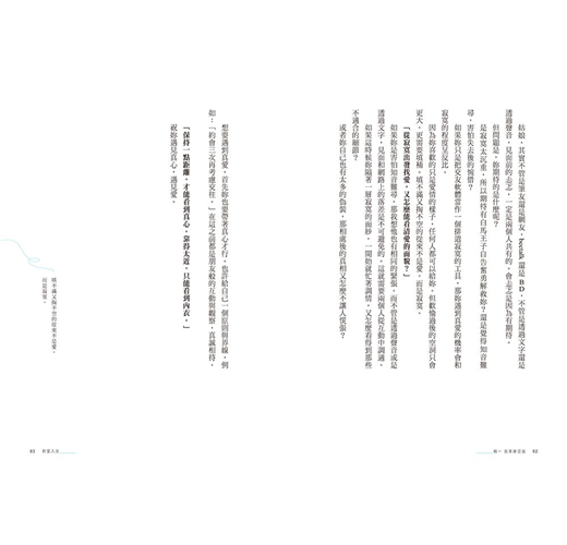 當時對於愛情,不是渴望得到,而是害怕擁有。畢竟還沒搞定自己之前,怎麼給另一個人承諾?那兩年之間的回文,立場客觀而超然,就像個看破紅塵的僧人,為在愛裡迷途的眾人道出一絲光亮。