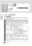 本書第一部分為行政學概要,此科是行政工作者的基本專業知識。依據考試命題大綱分為:「行政學基本概論」、「組織理論」、「人事與財務」、「公共政策與決策理論」、「行政環境」、「行政運作與管理技術」以及「行政倫理」。七章內容經由名師系統化的整合,濃縮必考重點,於考生概念吸收與觀念釐清大有裨益,順利答題非難事。
