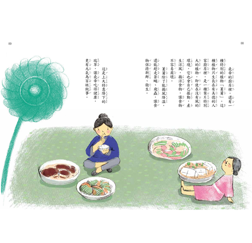 仁民愛物的堯帝,也有美麗的畫面,祥瑞的植物來幫忙他,讓他能好好處理國事:可以計算日期的「蓂莢」、會自己搖動搧風的「萐莆」,還有能判斷好人、壞人的「屈軼」,這些植物能通人性,在神話世界裡,才能占有一席之地。
