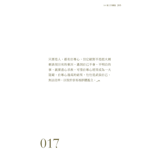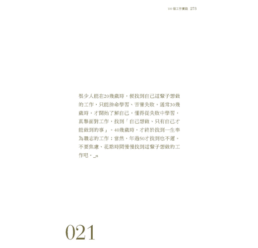 《100個基本》的目的並不在於逐一完成,而是能因掌握到這些原則,並依循自己的成長軌跡蛻變。