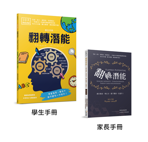 翻轉潛能有學生手冊與家長手冊兩本,家長老師在訓練某一單元時,必須先看完該單元的家長須知再訓練孩子,而家長老師自己可以先投入訓練,自己做學生手冊的題目,提升自己的感官能力與專注力,而孩子計時和聽覺題目,可以讓孩子學會操作碼錶以及學習如何以正確的口吻念題目給家長聽,除了能讓孩子看清楚題目、訓練口條並詳讀題目外,還能培養孩子成為一位訓練者,未來能體貼訓練者的心情,而家長老師成為受測者的同時,也能同理受測者面對題目時的謊張與可能不理解的題目。而爺爺奶奶自己做學生手冊的題目,能刺激大腦連結,強化視覺與聽覺之感官能力,若爺爺奶奶當訓練者,當孩子做完一題,爺爺奶奶在一旁記錄秒數,孩子闖關成功,就讓孩子加一個星星或蓋一個印章,累積到十顆或二十顆或一百顆星星就可以得到一個小禮物,滿足長輩想疼愛孫子的心情,孫子的能力也同時受到肯定,當訓練角色互換,做題目的雙方都能以比賽的方式以強化信心、鼓勵彼此的良性競爭,互動時,既好玩又有趣,在受訓練的當下,受測者與訓練者,大人、小孩、老人的大腦都能得到刺激,增強感官專注記憶力,老人還能減緩大腦老化,一舉數得。