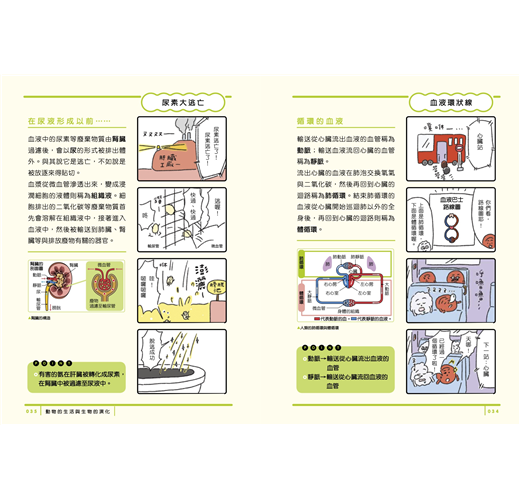在作者巧手下,每頁都有一則四格漫畫,將科學名詞通通轉成擬人角色,