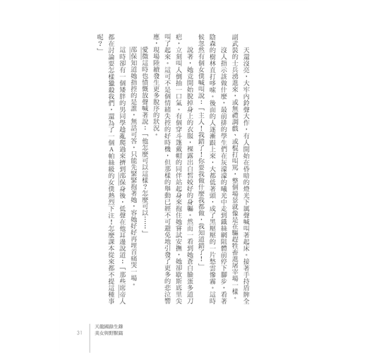 我的外祖母是個會說故事的女僕――抱歉,應該正名為「管事」――張老師說我有她的遺傳,希望那是真的,免得你們乏味。不過故事還是得從必要的背景說明開始。首先,是一段被上一代人暱稱「魔音搖籃曲」的念謠……