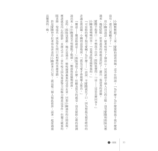 過去學校不只一次割腕、跳樓等自殺事件像傳染病般蔓延開來,推根究底都是無趣的日子容易把人逼入灰暗的角落裡鑽牛角尖。讓人有所期待,儘管不多,就像成天吃的怪味豆渣餅、水煮馬鈴薯加一點點鹽巴,還是能讓生活比較過得下去。