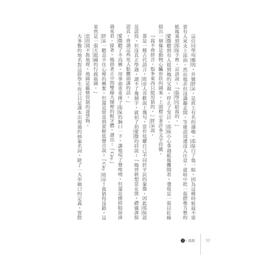 此外,光功課好是不夠的。「學生忠貞思想與道德品行綜合考評鑑定」――簡稱「忠道評鑑」――更是要人命!一個項目未達標準,輕則接受輔導處在夠疲累的課表之外多加令人頭皮發麻的感化課程,重則失去分發資格――活下去的權利。