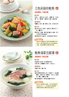 ●三色彩蔬炒鮭魚 ●鮭魚海菜豆腐湯