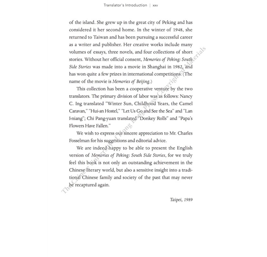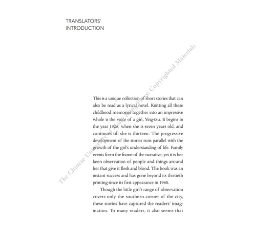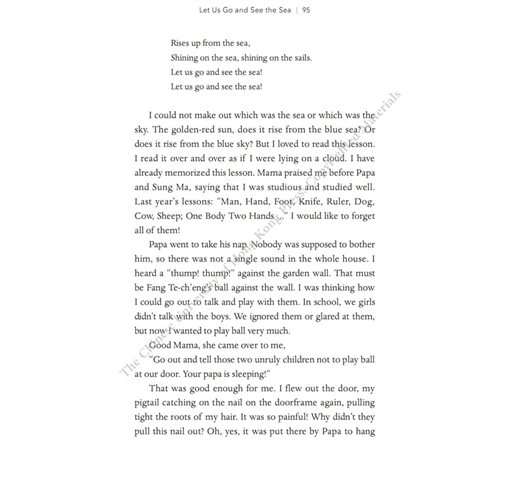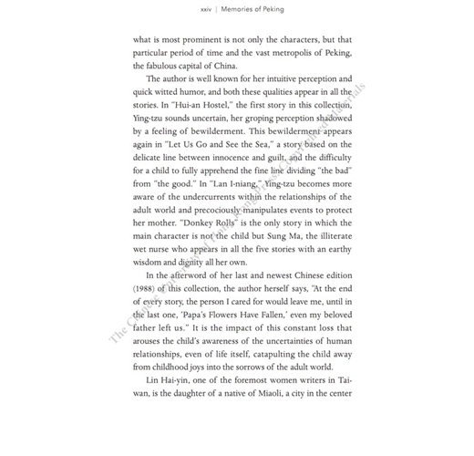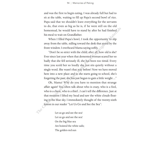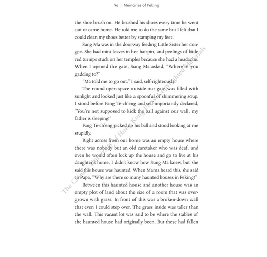 Through the keen eyes and curious mind of a young girl, Ying-tzu, we are given a glimpse into the adult world of Peking in the 1920s.