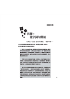 每一個主題的寫作示範與分析,可以分成三大部分,第一部分呈現的是過往的教學經驗裡,給對學生給出大體方向的「提綱挈領」;而第二部分則是透過認知概念的分析,幫助讀者建立完整關於該主題的認知結構與書寫步驟。第三部分呈現了實際教學現場中,學生的演練作品...