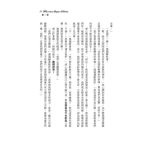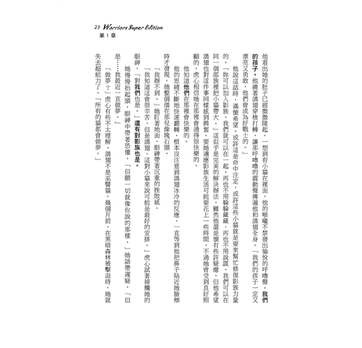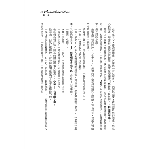 ◆時序在六部曲之四以後,當影族陷入滅族危機之際,副族長虎心卻失蹤了,同時失去蹤影的還有雷族戰士鴿翅,他們是否背棄自己的部族,以及堅守的戰士守則?