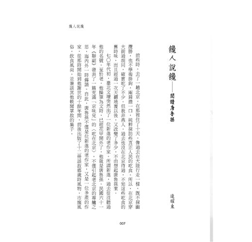 他出身清皇族,交遊廣,閱歷豐。本書從磕頭請安的禮儀談到北平的勤行,由蜀山奇書到影壇彗星阮玲玉的一生,自山西麵食到察哈爾的三宗寶……