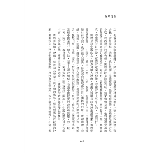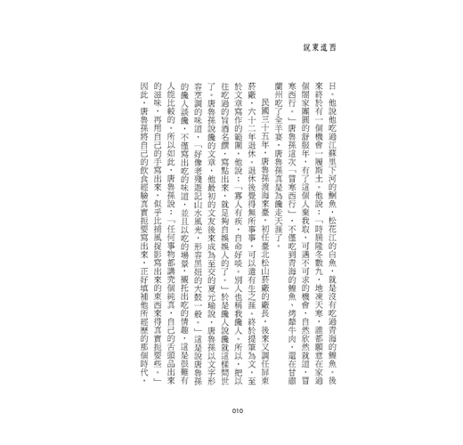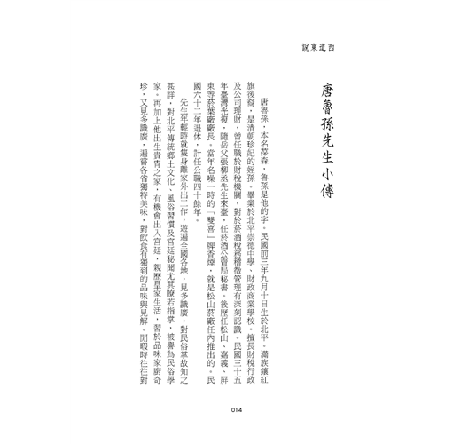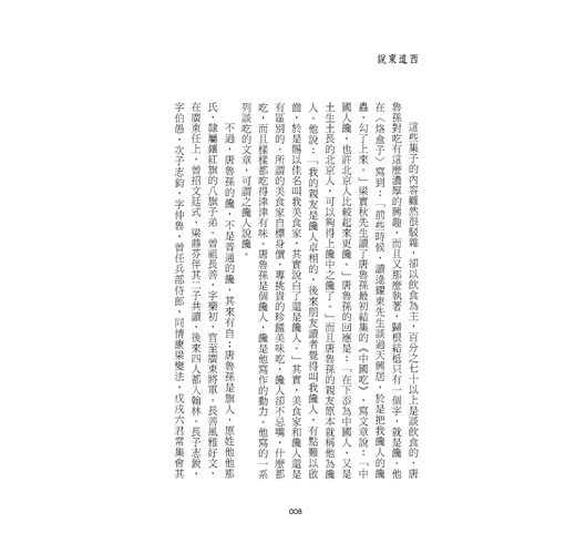 《說東道西》是唐魯孫先生繼《老古董》、《酸甜苦辣鹹》、《大雜燴》、《南北看》、《中國吃》、《什錦拼盤》之後又一巨獻。