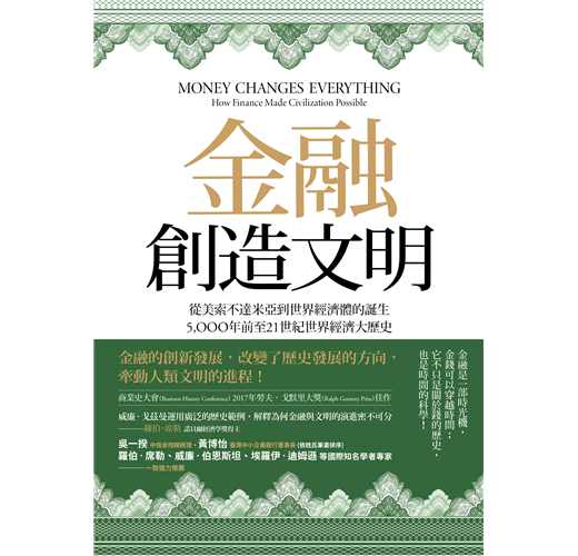 貨幣是自輪子之後最偉大的發明。在《金融創造文明》這部大作中,威廉‧戈茲曼追蹤貨幣的角色,上至史前時代,下及現代,說明文明如何在金融交易的基石上發展。這本書寫得好,極為動人。