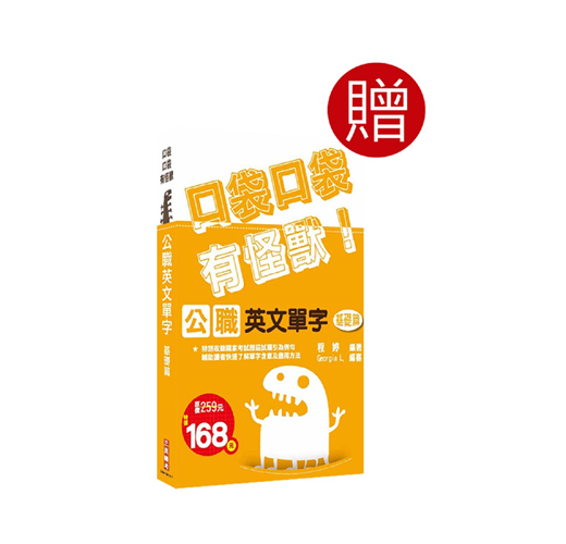 購買桃園捷運[司機員/站務員]超效套書即贈《公職英文單字[基礎篇]》。單字本特別收錄國家考試歷屆試題引為例句,輔助讀者快速了解單字含意及應用方法。口袋書內容豐富,體積小巧,方便讀者隨身攜帶,時時累積英文字彙實力!