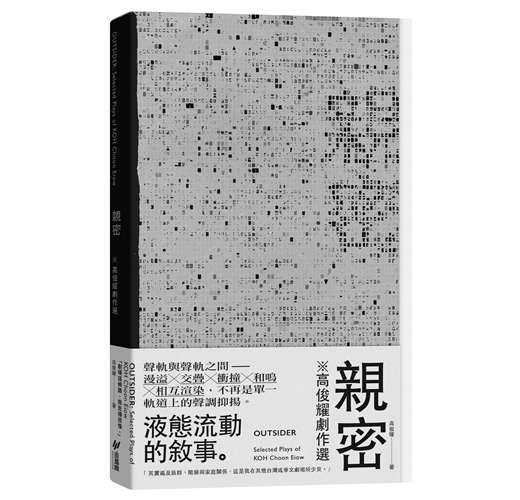 《親密:高俊耀劇作選》精選高俊耀近十年的三部劇作《死亡紀事》(與蔡承燊合著)、《大世界娛樂場II》(與莫兆忠合著)、《親密》,主題遍含馬來西亞族群政治、澳門賭場資本主義、離散華人的精神地理。本書同時收錄四篇創作手記、兩場對談紀錄,完整呈現一位劇場創作者的藝術階段。