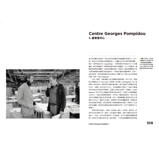 「你現在坐著嗎,老兄?」我接起電話時,倫佐‧皮亞諾(Renzo Piano)這樣問我(他比我小四歲)。我跟他說請放心我是坐著的。「我們贏了波堡(Beaubourg,譯註:即龐畢度中心)競圖,」他解釋說。「今天晚上會在巴黎公布。我們必須在場,但我沒辦法離開熱內亞;你們其他人可以從倫敦飛過去嗎?」
