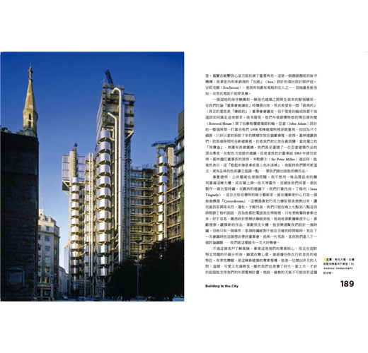 本書為龐畢度中心建築師Richard Rogers的親筆自傳,從小時候的建築啟蒙談起,訴說歷經戰亂、患有讀寫障礙、「天生不是學建築的料」的他,如何從一位穿著牛仔褲、T恤去參加頂級頒獎典禮的小建築師,蛻變為足以撼動城市的世界級大師。這是一部情感豐沛的回憶錄,也是一部當代建築編年史,從柯比意到密斯,對近現代建築史進行了第一手回望與反省;從倫敦、紐約到芝加哥,不只談建築設計理念,也談城市規劃、公共空間、歐美城市比較、建築史、建築教育和未來願景。談如何打造城市,同時也談居住正義,更關心人類未來。當中更詳細記述了Richard Rogers各時期重要建築波瀾壯闊的執業實況,像龐畢度中心,其背後執行規劃的複雜與詭譎,與這棟驚世駭俗的建築相比毫不遜色!