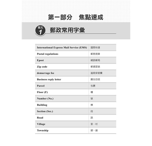 單元1 郵政常用字彙