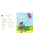 ‧集結近1,000句英文會話,多元主題包含:場合(如遊樂場、美術館、博物館、動物園、水族館、餐廳、過馬路…)、才藝(畫畫、樂高、唱歌、彈鋼琴…)、節日(拜年、聖誕節、生日…)、運動(跳繩、跑步、騎腳踏車…)、職業(老師、醫生、護士、警察…)、旅行(火車、露營、國外…)、與人相處(和兄弟姊妹、朋友…)、人際(稱讚、感謝、道歉、原諒…)、價值(愛、家人、金錢),以及環境(人與自然、動物與植物)…等。